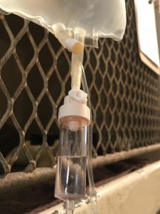 In order to properly diagnose Patience, I thought it was best to run a few tests. I started with a fecal sample. Basically, taking a sample of Patience’s poop, mixing it in a sugar solution and let it sit for about 10 minutes. I can then look at this sample under the microscope and look for parasite eggs. I did find a few hookworms (a parasite), which can cause patients to lose blood, causing the anemia.