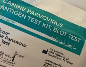 The next test to perform was a parvo test. This test, also using a lovely poop sample, will test for Parvovirus. In this case, the test came back positive. Due to the patient’s history, clinical signs and a positive parvo test I diagnosed Patience with parvovirus.